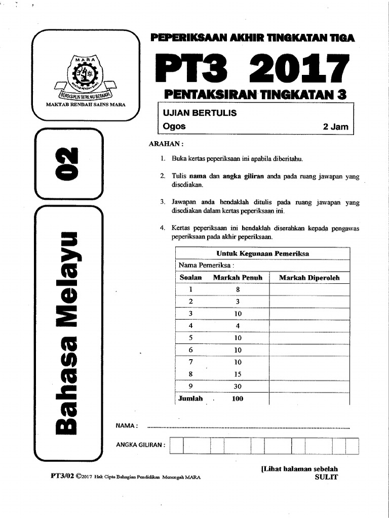 PEPERIKSAAN AKHIR TAHUN 2017 TINGKATAN 4 SAINS Kertas 2 Dua Jam Tiga Puluh Minit JANGAN BUKA KERTAS SOALAN INI SEHINGGA DIBERITAHU MAKLUMAT UNTUK CALON 1. Next article Soalan Ramalan PT3 Bahasa Melayu Berserta Jawapan 2017. Soalan Pentaksiran Pertengahan Tahun 2021 tahun 4 dan tahun 5.